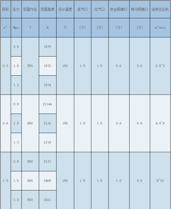 選配儲氣罐壓力應(yīng)與空壓機(jī)的工作壓力一致,容積大小約為空壓機(jī)容積流量的1/5-1/10;環(huán)境條件允許的話可選擇大容積的儲氣罐,有助于儲存更多壓縮空氣和更好地預(yù)除水。