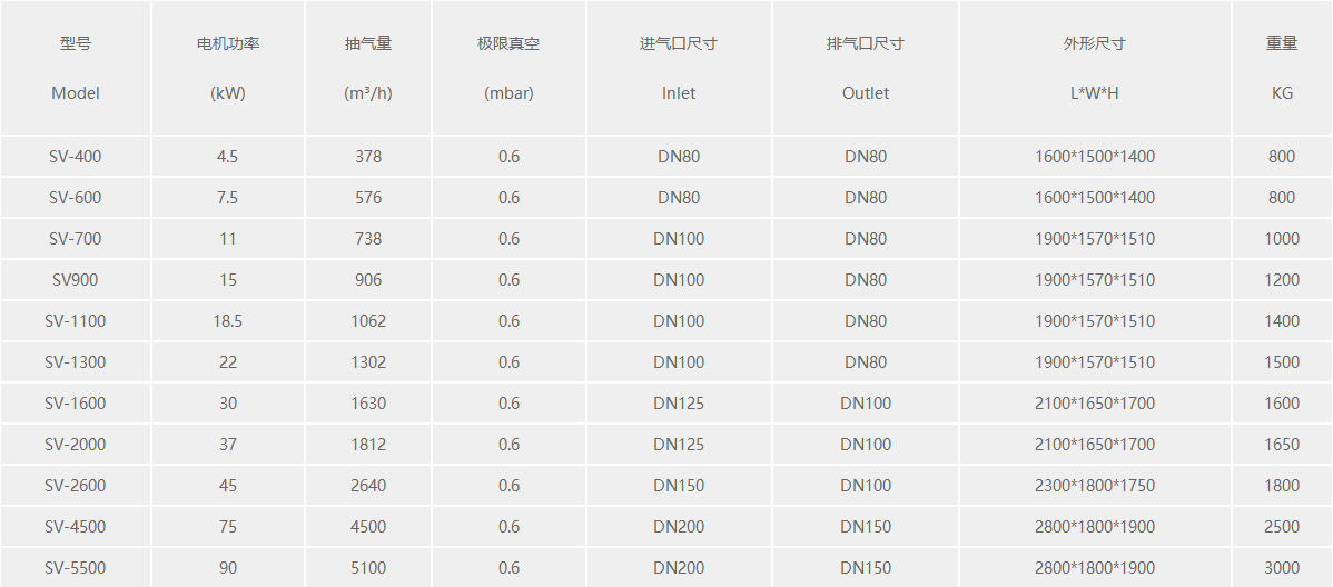 5.Sv系列螺桿真空泵:功率從4.5kW到90kW不等。